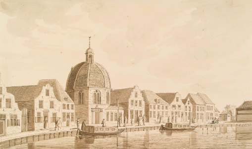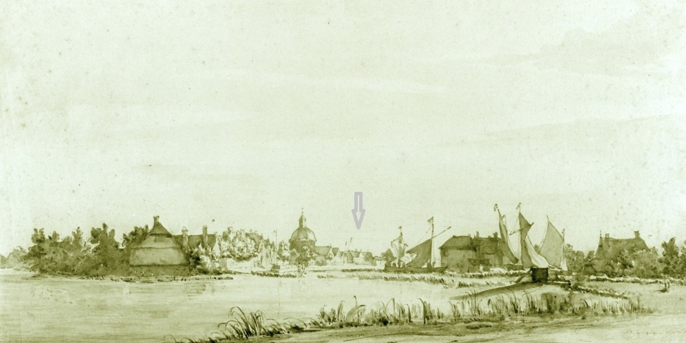 zoals getekend door Christiaan Huygens de Jongere, de pijl wijst naar 'De Zwaan'