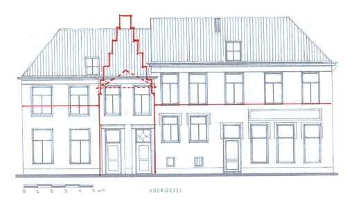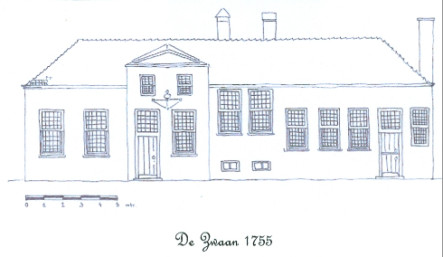 Op de hierboven afgebeelde tekening door Hendrik Tavernier uit 1784 ziet 'De Zwaan' er uit zoals wij hem vandaag de dag kennen en zoals hij is opgemeten door ir. B. van Hagen in 1993. We geven hier ook de oude gevelomtrekken in rood weer in deze tekening.